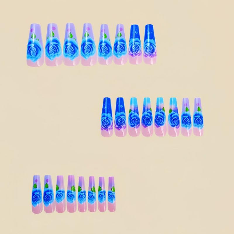 Long Press on Nails Coffin Shape Blue Acrylic Nails with Flower Design – My Honest Review